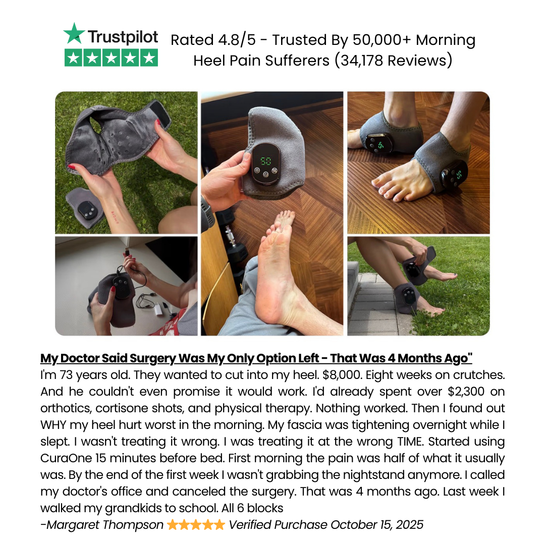 Same here!! I was about to schedule surgery. $8,000 and 8 weeks on crutches at my age?? Then I found out about the overnight tightening thing. Nobody told me that's why mornings were the worst. Been using CuraOne before bed for 6 weeks now. No more broken glass feeling when I stand up. Canceled my surgery consultation last month. Wish I knew about this 5 years ago 😭